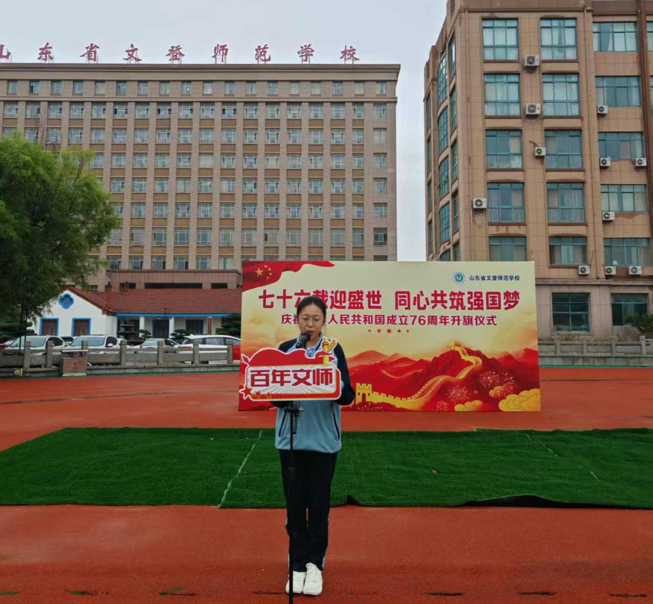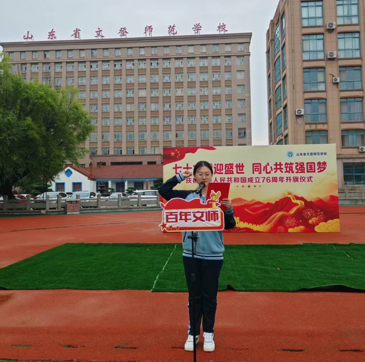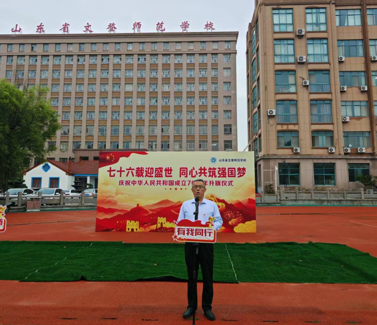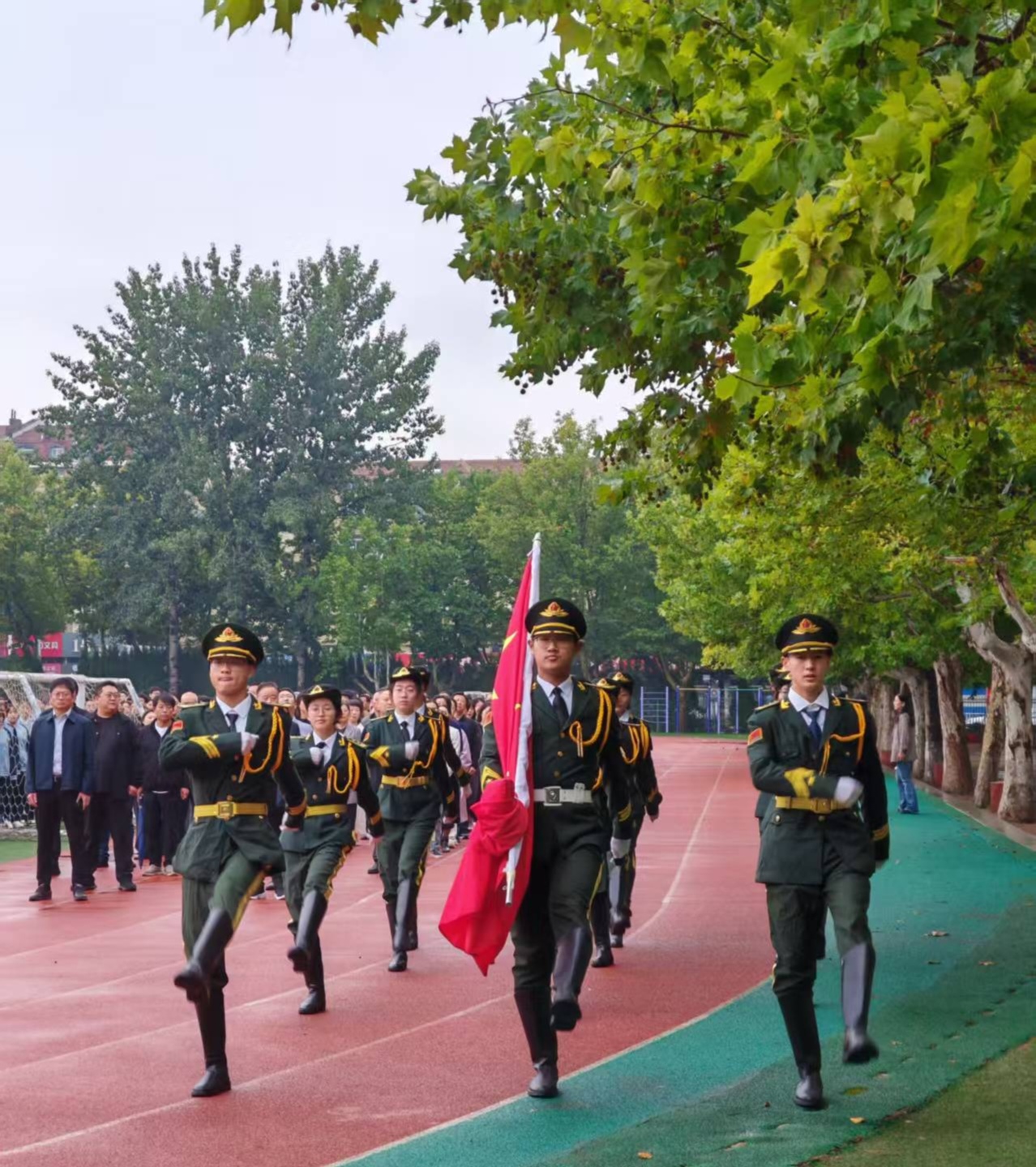 秋意渐浓,晨光熹微。为庆祝中华人民共和国成立76周年,激发广大师生的爱国热情,10月13日上午,学校举行了“铸爱国心 立强国志 践报国行”主题升旗仪式,全体师生共同参加。
