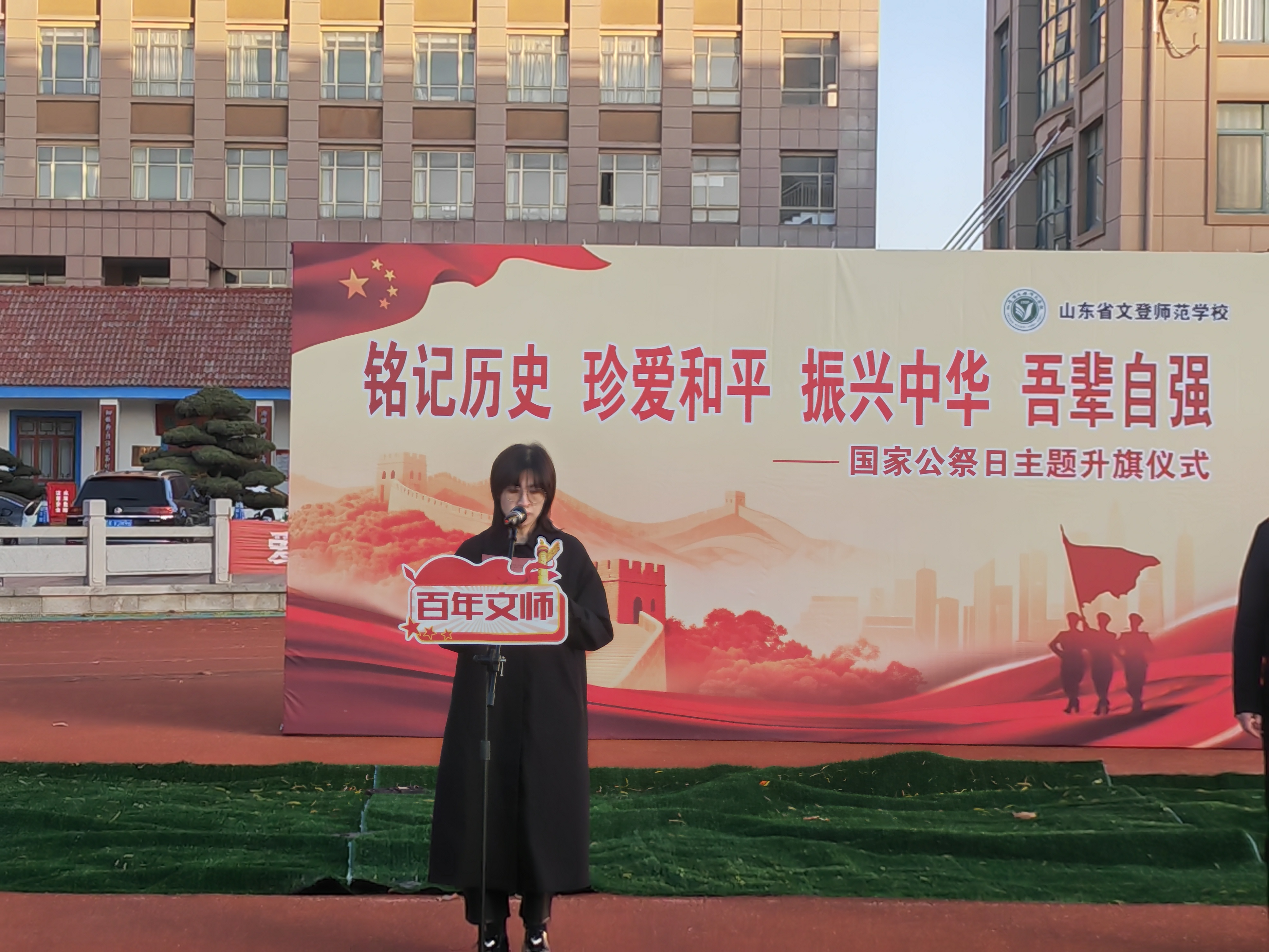 仪式最后,学生处负责人表示,历史是最好的教科书,也是最好的清醒剂。设立国家公祭日,不是为了延续仇恨,而是为了铭记苦难、守护和平;缅怀先烈,是为了汲取力量、开创未来。希望全体师生以此次升旗仪式为契机,将爱国情怀转化为教书育人、勤学苦练的实际行动,不负时代使命,不负韶华光阴,为实现中华民族伟大复兴的中国梦贡献文师力量。